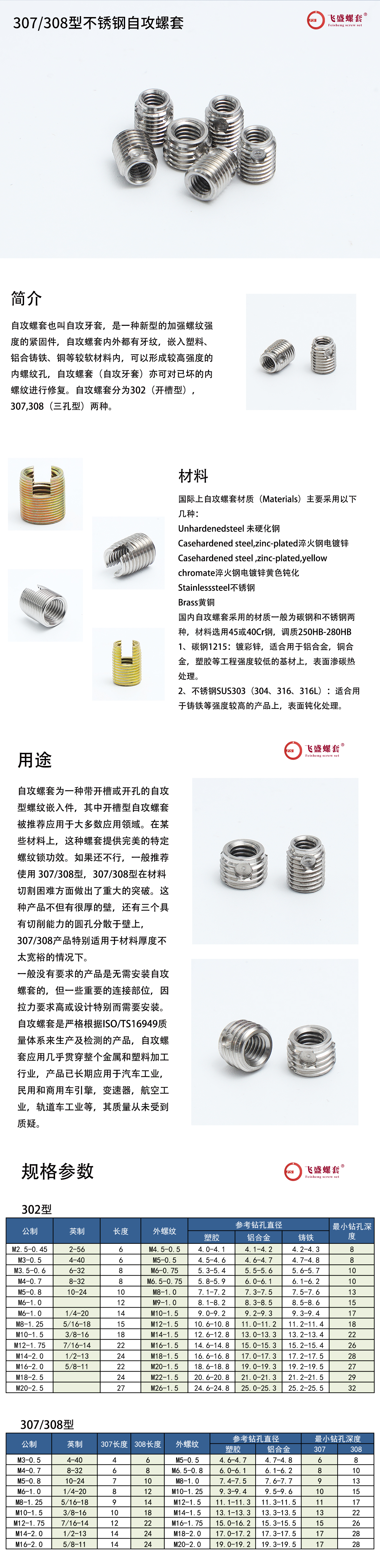 品名:307/308系列盲孔自攻螺套